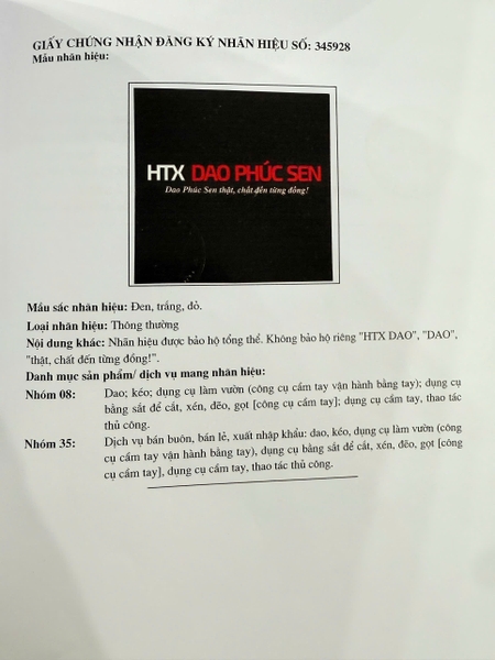 2. Giấy bảo hộ Thương hiệu được bảo hộ tại cục sở hữu trí tuệ Việt Nam số 537367.
