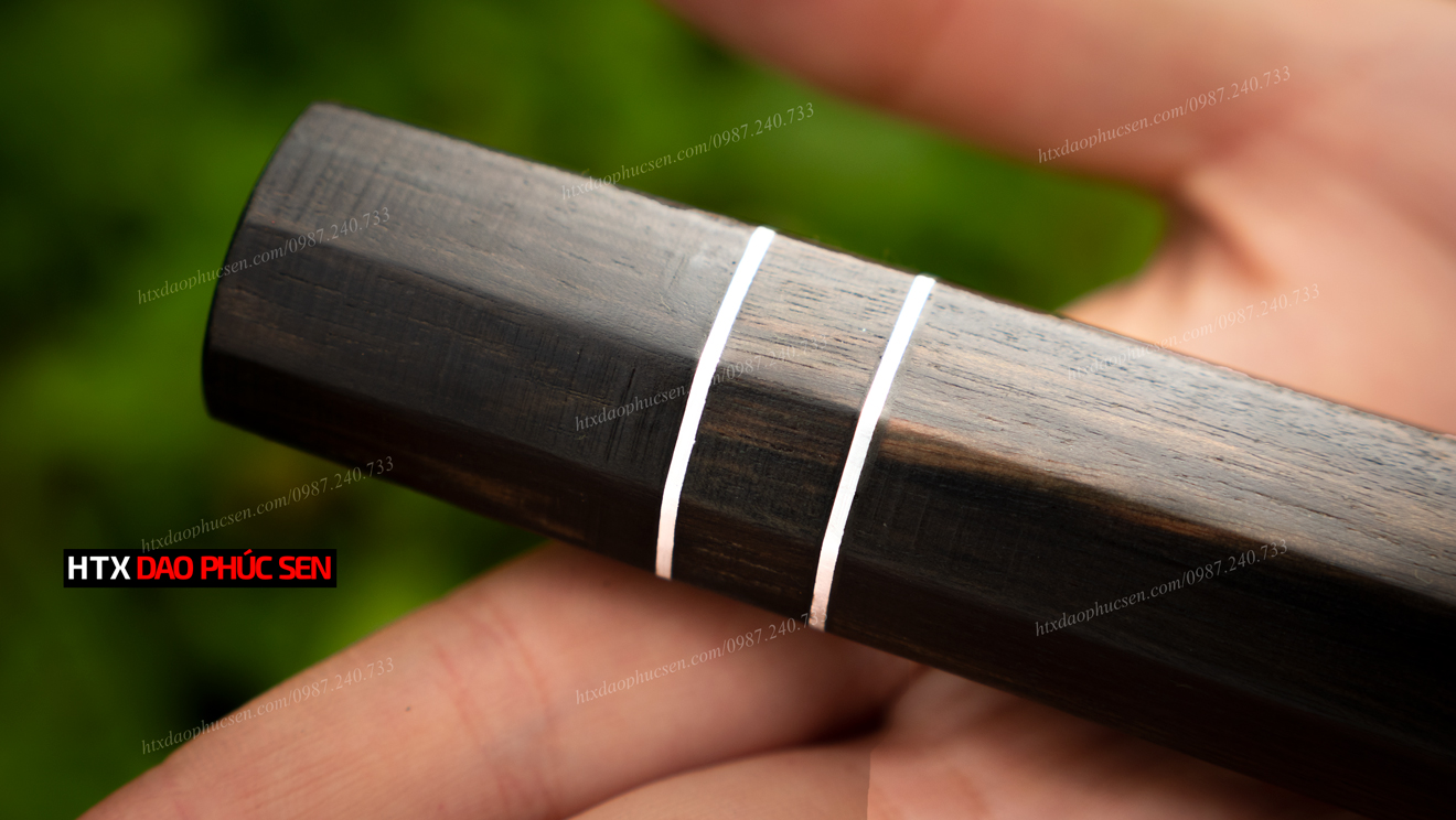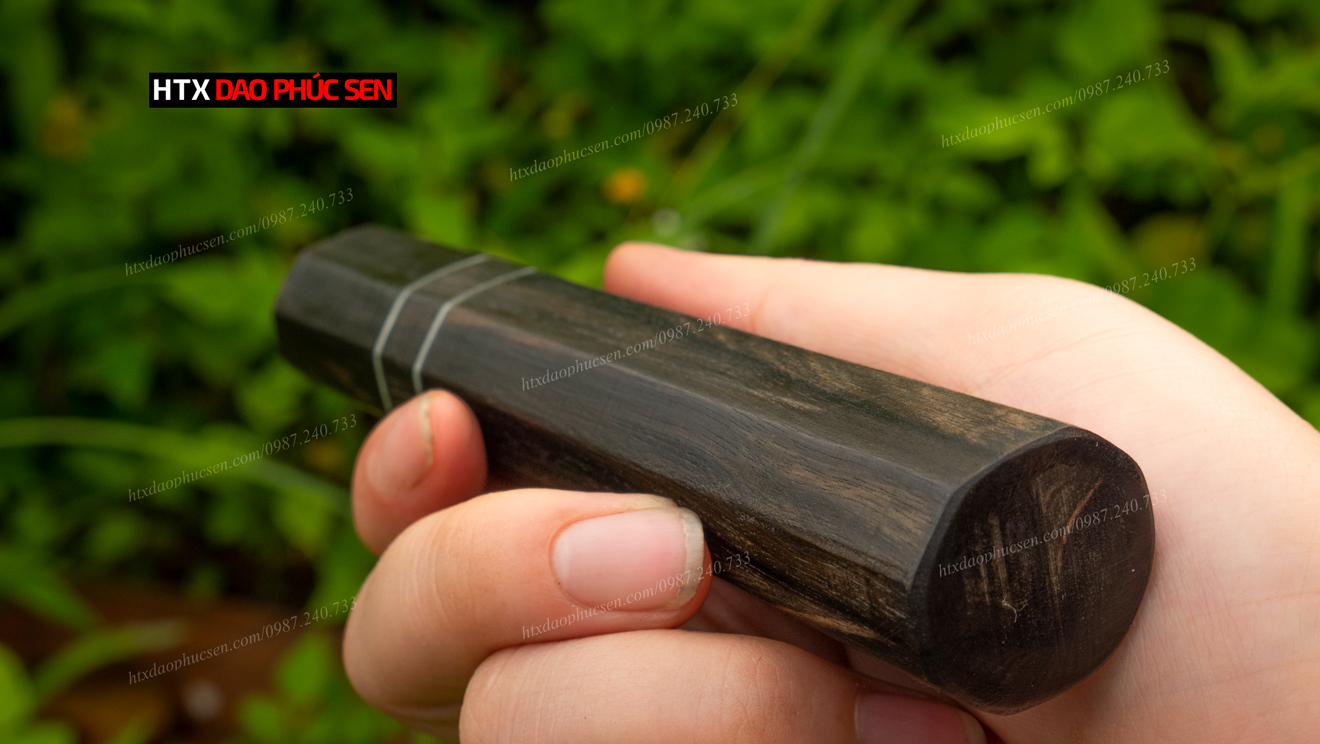 Cán dao Nhật bát giác gỗ mun - CN02 được thiết kế hình bát giác ( 8 cạnh ) giúp việc cầm nắm khi sử dụng không bị trơn tuột, và tạo độ thẩm mĩ cao cho con dao