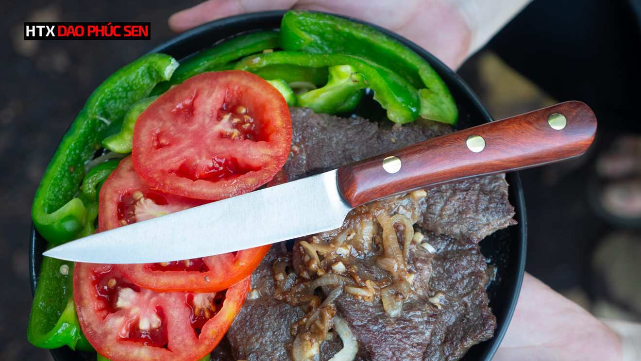 Dao ăn bít tết 12cm thép trắng DAC là mẫu dao nhà bếp được rèn thủ công từ thép trắng tại DAO VIP - HTX DAO PHÚC SEN – thương hiệu rèn dao nổi tiếng . Với thiết kế gọn nhẹ, sắc bén và dễ bảo quản, DAC là lựa chọn lý tưởng để lọc thái thịt, thái rau củ quả… cho gia đình, đầu bếp chuyên nghiệp và nhà hàng
