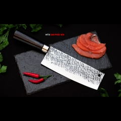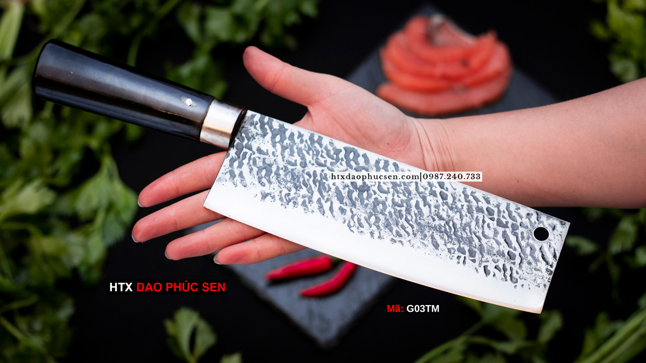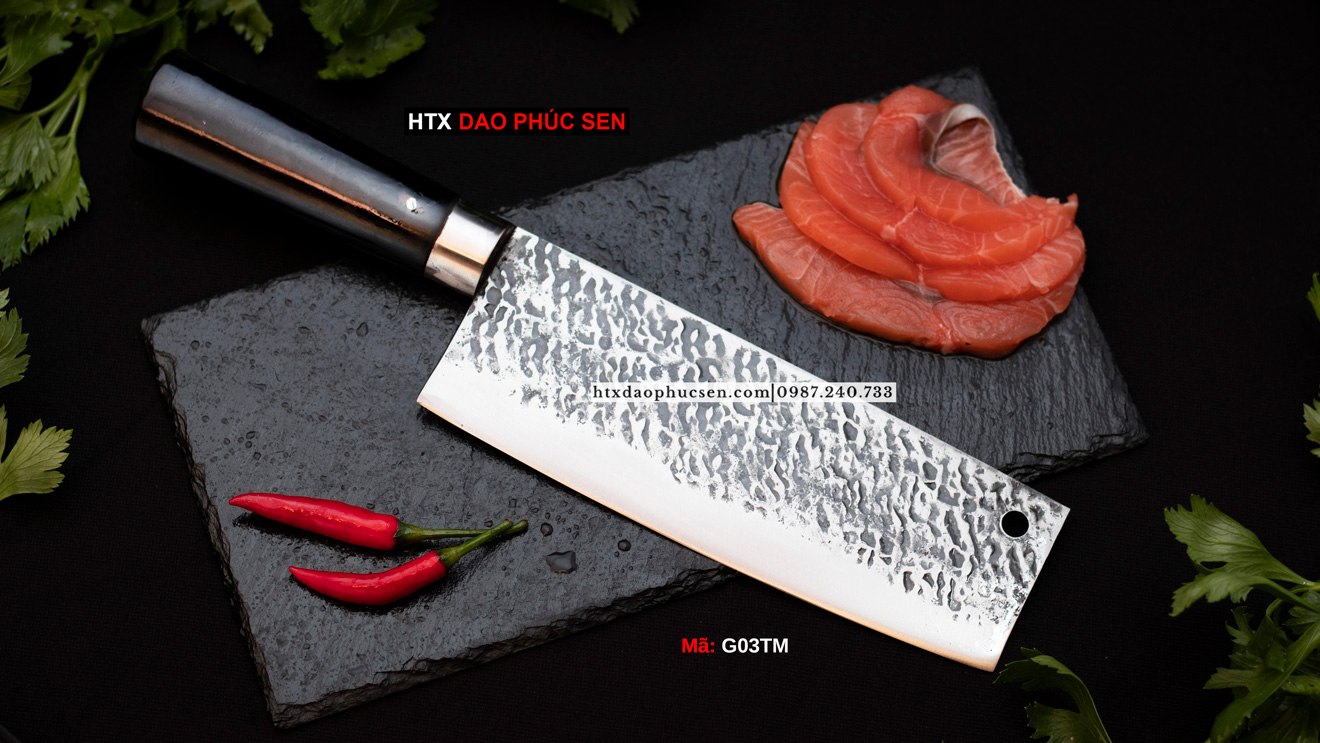 Dao thái 22 thép nhíp dập hoa văn – G03TM là dòng dao rèn thủ công được thiết kế chuyên dụng cho nhu cầu thái thịt, rau củ, sơ chế thực phẩm hằng ngày. Sản phẩm nổi bật với lưỡi dao sắc bén, độ bền cao, hoa văn dập tay tinh xảo. Đây là lựa chọn lý tưởng cho cả gia đình nội trợ, đầu bếp chuyên nghiệp lẫn người yêu dao rèn thủ công.