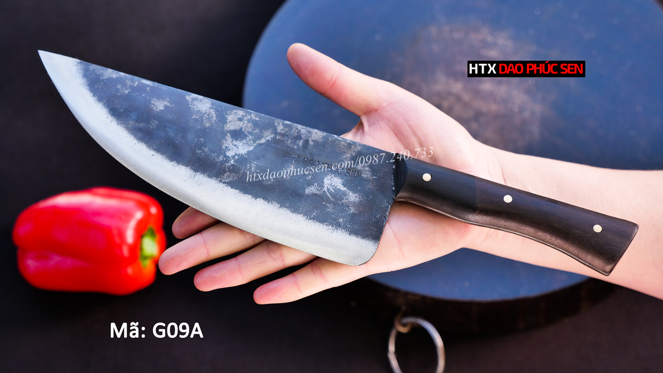 Dao thái lọc G09A Lựa chọn nguyên liệu 100% là nhíp ô tô ( Liên xô, Ifa ) được gia công tỉ mỉ từ lưỡi dao cho đến cán dao đảm bảo việc thái lọc sắc - ngọt. Các sản phẩm của HTX Dao Phúc Sen đều sử dụng than củi khi nung thép cũng như tôi dao để đảm bảo lưỡi dao khi ra lò sắc bén và bền lâu.
