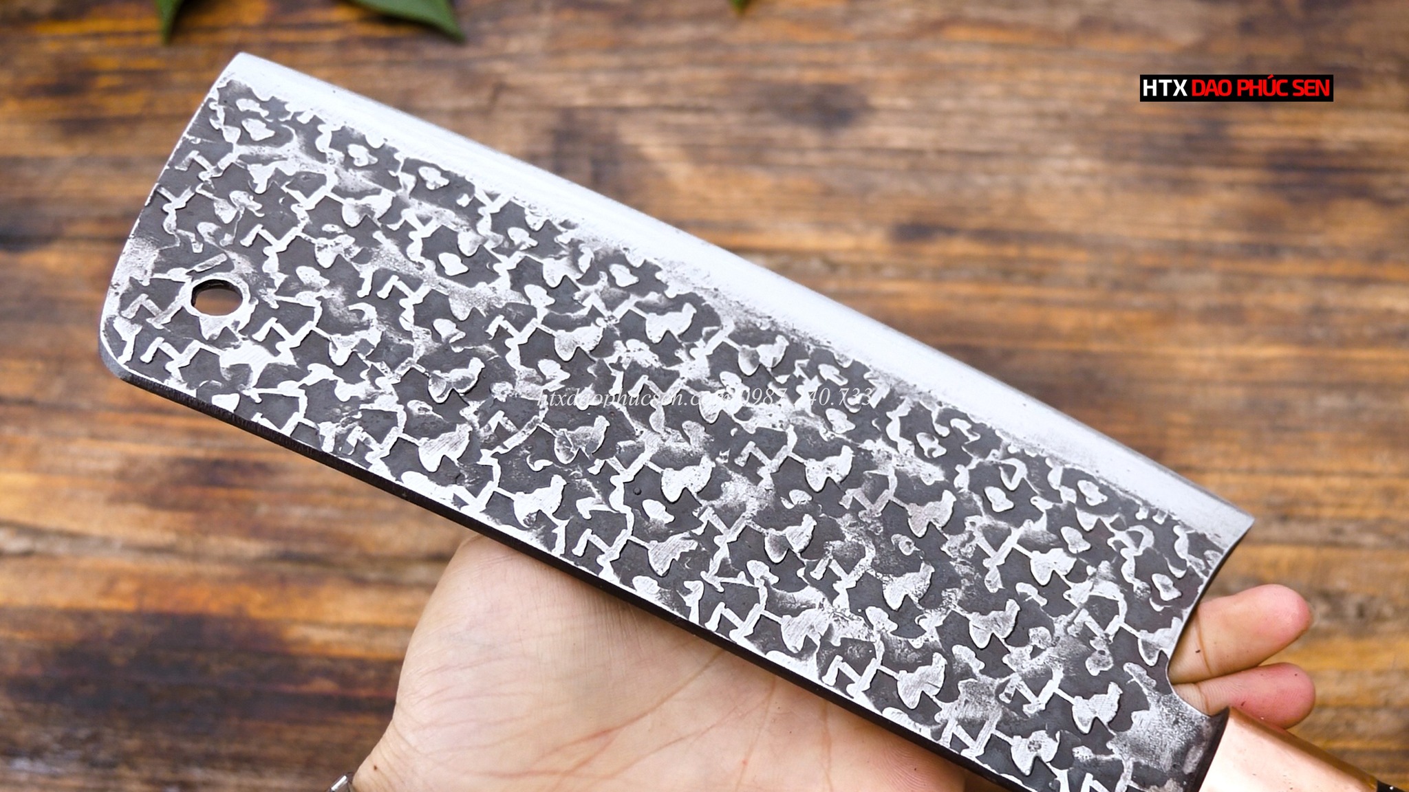 Dao chặt gà CG04T rèn thủ công từ thép nhíp dập hoa văn, sắc bén, bền bỉ,chặt nhanh vông vắn hàng chuẩn Dao Vip - Htx Dao Phúc Sen