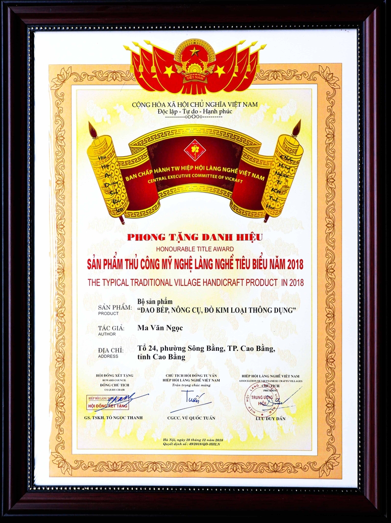 1. Đạt giải thưởng “ sản phẩm thủ công mỹ nghệ làng nghề tiêu biểu năm 2018” của Hiệp hội làng nghề Việt Nam phong tặng.