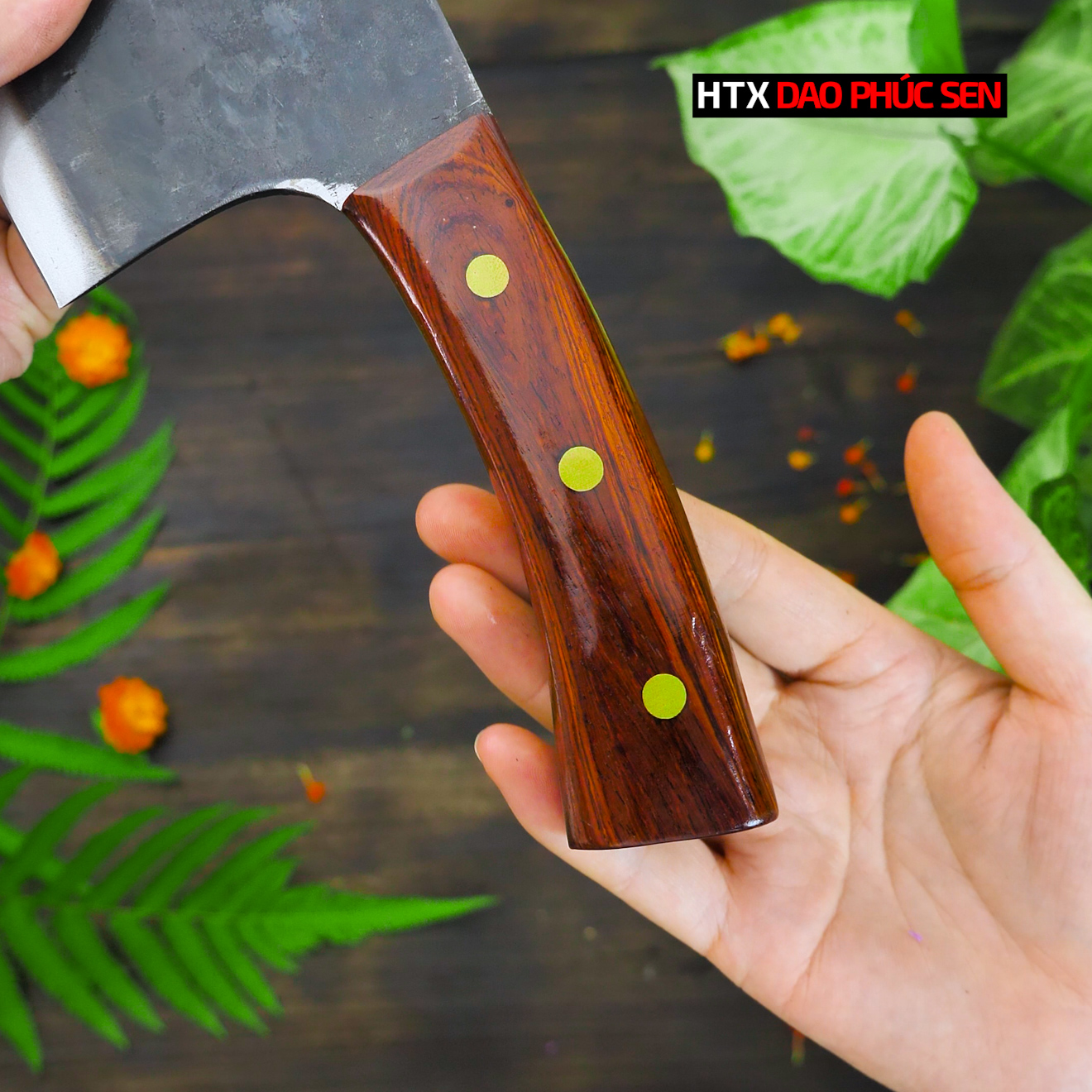 - Cán dao gỗ cẩm chắc tay, ốp phun tang chốt 3 đinh chắc chắn, chống trơn trượt