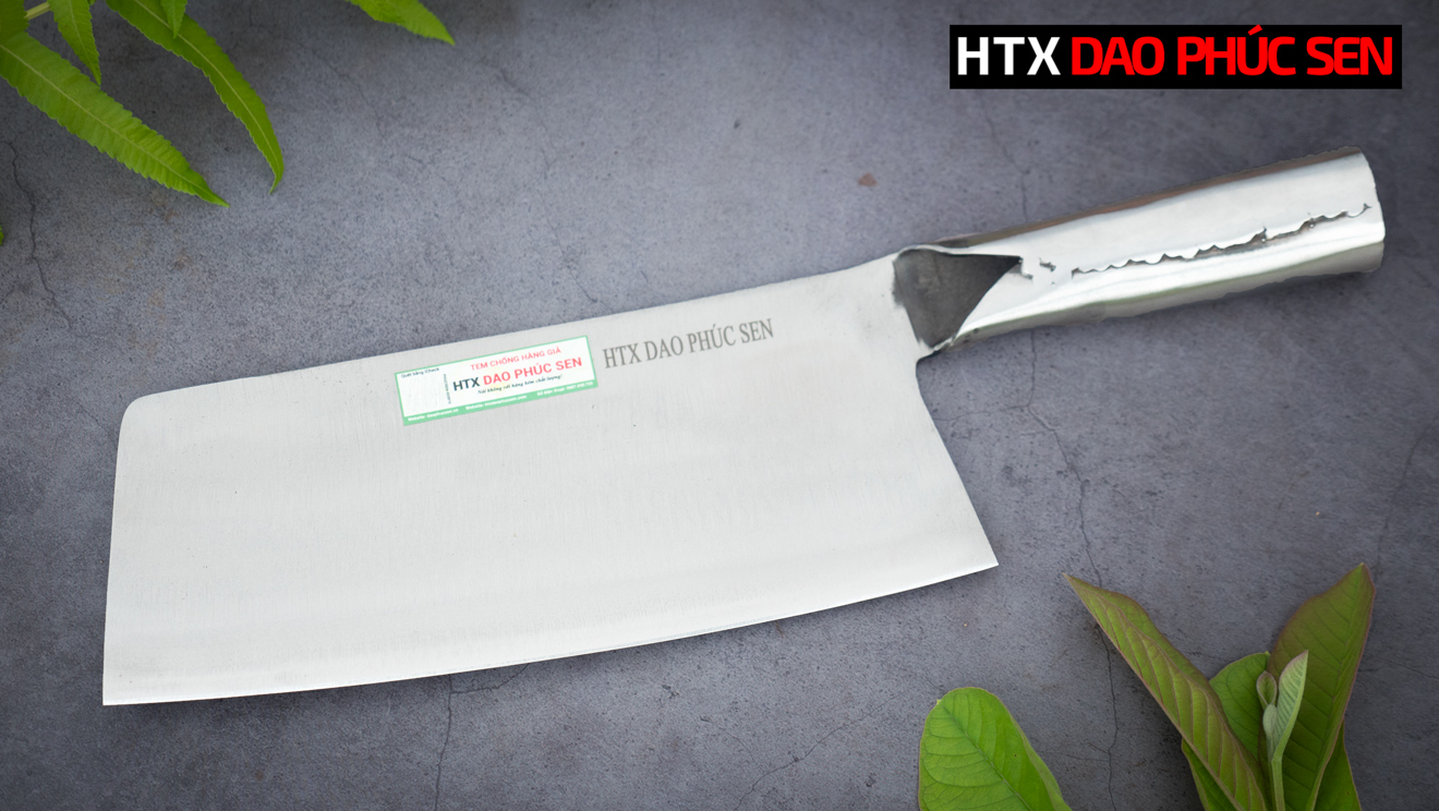 - Dao chặt gà thép không rỉ cán sắt SCGK được thợ rèn giỏi của HTX DAO PHÚC SEN rèn thủ công, đảm bảo tỉ mỉ đến từng chi tiết. Dao đạt được độ sắc bén cao.