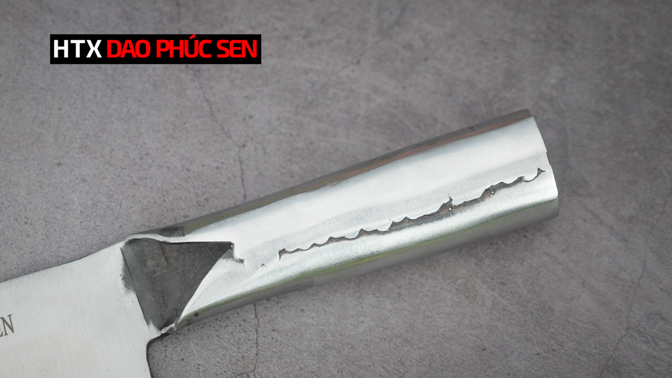 - Cán dao có kích thước vừa phải, thiết kế đẹp mắt, cán liền sắt chắn chắn