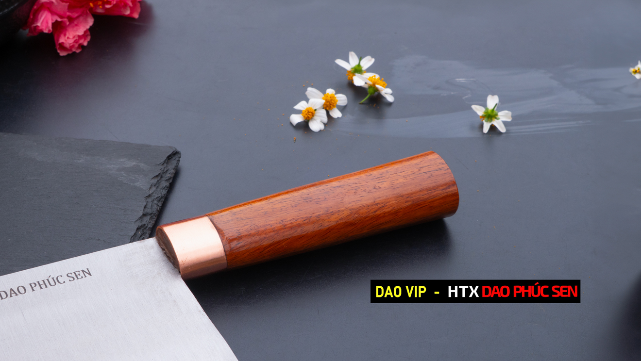 Sản phẩm thủ công được chế tác chỉn chu, cẩn thận từng chi tiết nên độ chính xác cao. Cán dao được tiện từ gỗ tự nhiên chắc chắn, cán gỗ tự nhiên kết hợp khâu đồng đỏ chắc chắn, đẹp mắt, hạn chế bung lưỡi. Cán được thiết kế hình ovan thuôn theo tay nên cầm chắc chắn, an toàn sử dụng, chống trơn trượt.