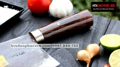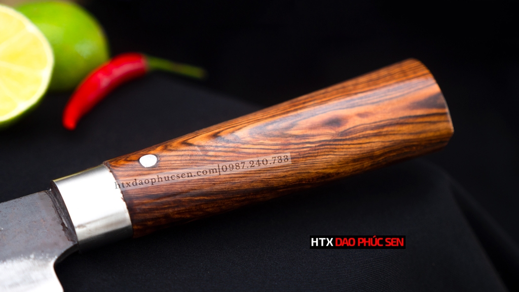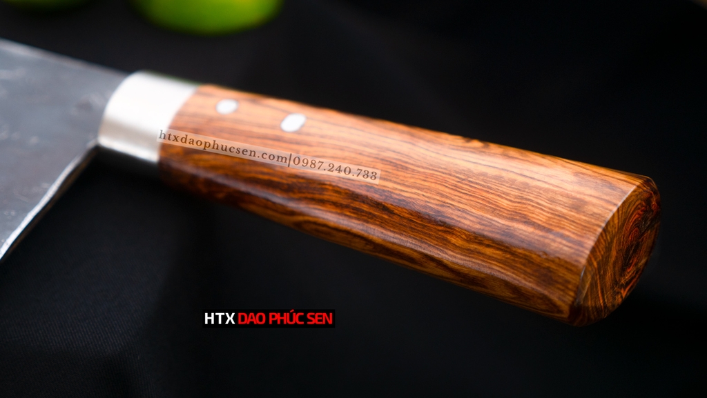 Lưỡi dao được chế tác từ thép nhíp ô tô, đảm bảo độ cứng cao, hạn chế mẻ, ít cong vênh, giữ sắc bén lâu dài. Cán dao gỗ tự nhiên, kết hợp khâu inox hạn chế bung lưỡi, tăng tính thẩm mỹ và an toàn.