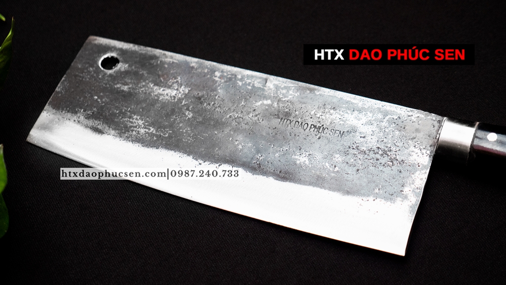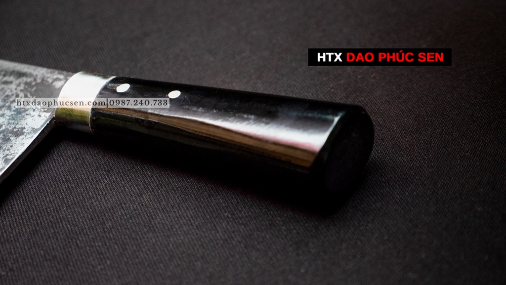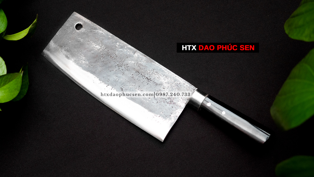 Dao Chặt xương cán mun - G06M Lựa chọn nguyên liệu 100% là nhíp ô tô ( Liên xô, Ifa ) được các thợ rèn giỏi gia công tỉ mỉ từ lưỡi dao cho đến cán dao đảm bảo việc thái sắc - ngọt. Các sản phẩm của HTX Dao Phúc Sen thợ rèn đều sử dụng than củi khi nung thép cũng như tôi dao để đảm bảo lưỡi dao khi ra lò sắc bén và bền lâu. Lưỡi dao được rèn mỏng dần từ sống dao xuống lưỡi dao
