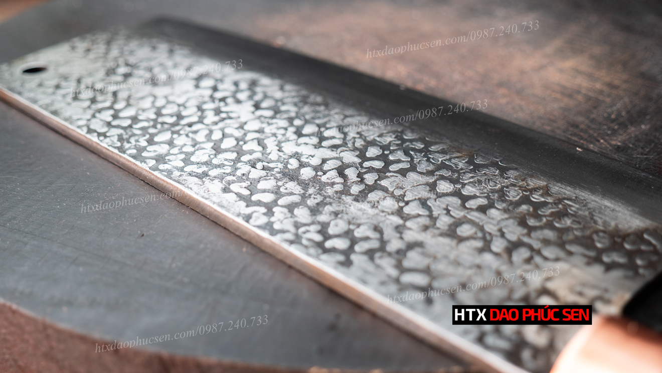 Dao chặt xương sắc bén - Thép nhíp ô tô - Cán cẩm khâu đồng - G06TDD Lựa chọn nguyên liệu 100% là nhíp ô tô ( Liên xô, Ifa ) được các thợ rèn giỏi gia công tỉ mỉ từ lưỡi dao cho đến cán dao đảm bảo việc thái sắc - ngọt. Các sản phẩm của HTX Dao Phúc Sen thợ rèn đều sử dụng than củi khi nung thép cũng như tôi dao để đảm bảo lưỡi dao khi ra lò sắc bén và bền lâu. Lưỡi dao được rèn mỏng dần từ sống dao xuống lưỡi dao