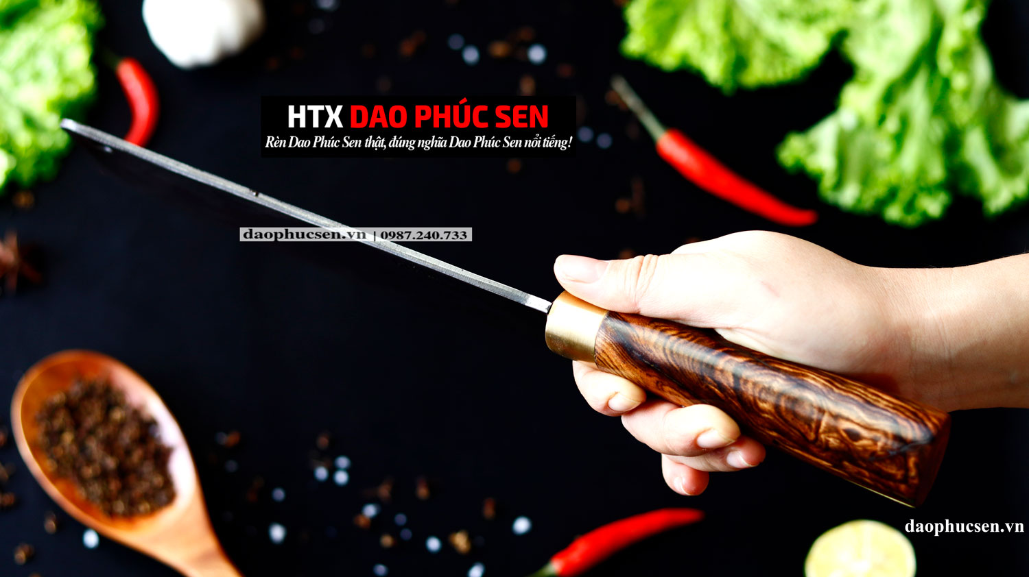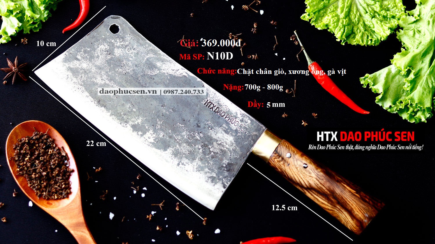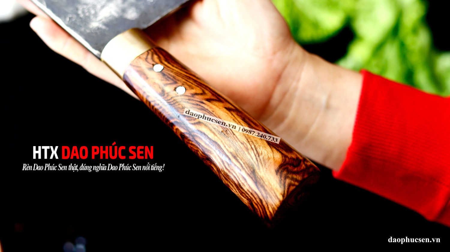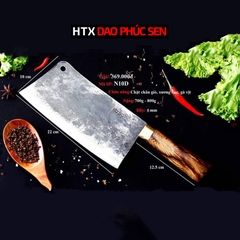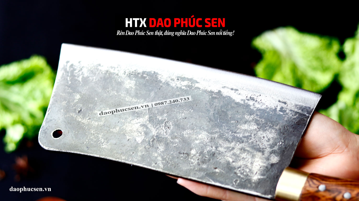 - Dao phúc sen chặt xương mới khâu đồng là một sản phẩm của hợp tác xã Dao Phúc Sen. với chiều dài tổng thể của dao là 34.5 cm, bề rộng 10 cm, độ dầy khoảng 5 mm, cùng với cân nặng 700g - 800g, thiết kế hiện đại sản phẩm rất thích hợp và được sử dụng để chặt các loại xương như xương sườn, xương óng, thủ lợn....Sản phẩm cho vết chặt và vết cắt đẹp, ngọt, mượt mà và vuông vắn, đạt thẩm mỹ cao mà không làm vỡ nát miếng thịt. miếng xương ngoài ra phần lưỡi được rèn bởi tay nghề của thợ rèn giỏi nên rất sáng bóng, sắc bén.