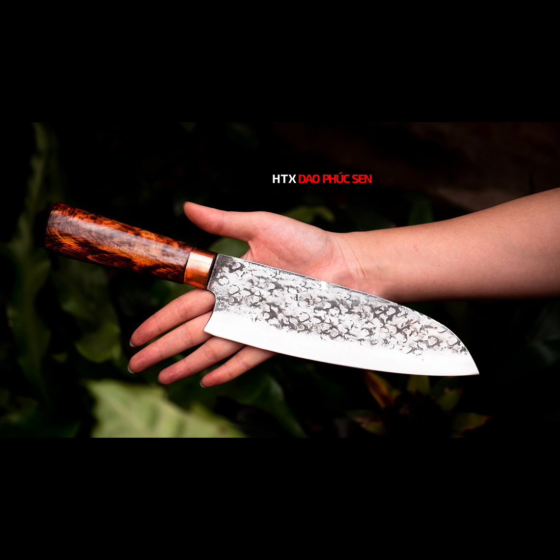 Dao Deba chống dính - N12TDD Lựa chọn nguyên liệu 100% là nhíp ô tô ( Liên xô, Ifa ) được các thợ rèn giỏi gia công tỉ mỉ từ lưỡi dao cho đến cán dao đảm bảo việc thái lọc sắc - ngọt. Các sản phẩm của HTX Dao Phúc Sen thợ rèn đều sử dụng than củi khi nung thép cũng như tôi dao để đảm bảo lưỡi dao khi ra lò sắc bén và bền lâu. Nét đặc biệt của mẫu dao này là bề mặt lưỡi dao được thợ rèn giỏi của HTX Dao Phúc Sen đập rèn hoa văn tỉ mỉ đẹp mắt tạo nét khác biệt cho từng con dao và bề mặt hoa văn này còn có tác dụng chống dính bám thực phẩm khi cắt, thái.