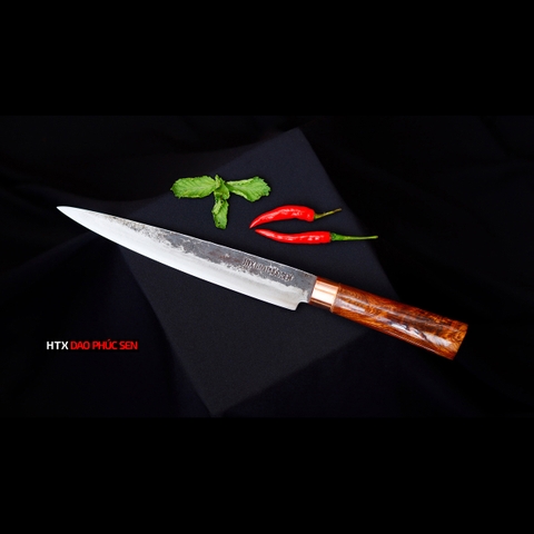 Dao Phúc Sen phile khâu đồng đỏ là một sản phẩm của hợp tác xã Dao Phúc Sen. với chiều dài tổng thể của dao là 35 cm, bề rộng 3 cm, độ dầy khoảng 2 mm, cùng với cân nặng 150g, với trọng lượng nhẹ, thiết kế gọn gàng sản phẩm rất thích hợp và được sử dụng để thái rau, thịt....cho vết cắt đẹp, ngọt, mượt mà và vuông vắn, đạt thẩm mỹ cao. ngoài ra phần lưỡi được rèn và thiết kế dài có mũi nhọn nên còn được sử dụng tốt một số chức năng thái khác như lọc, róc thịt, phile cá, cắt tỉa rau củ quả.