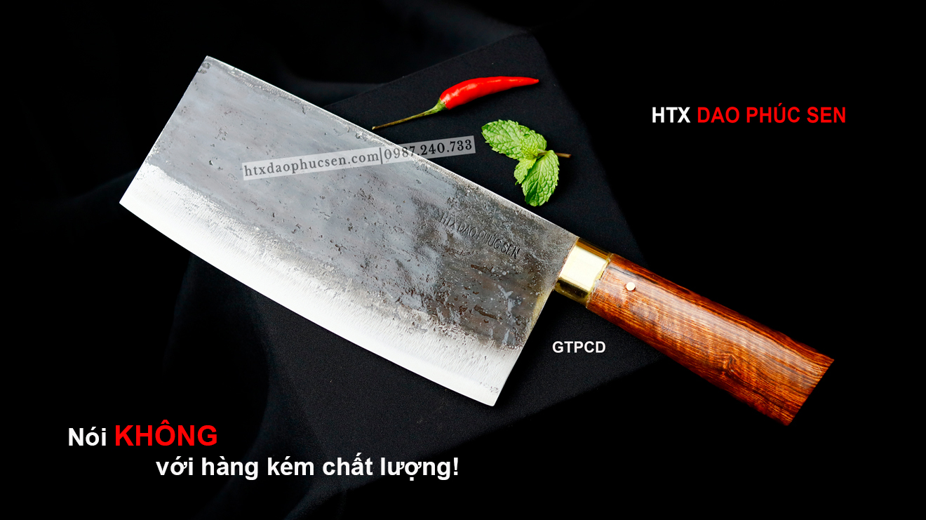 Là một sản phẩm của Hợp Tác Xã Dao Phúc Sen, Sản phẩm được rèn từ thép nhíp xe ô tô, có kích thước, chiều dài lưỡi là 20 cm, bản rộng 10cm và độ dầy lưỡi chỉ Khoảng 1 ~ 2 cm nên rất mỏng. cùng với trọng lượng toàn bộ con dao chỉ vào khoảng 300 gr nên thái rất sắc. đặc biệt chặt gà chín, vịt chín rất bén, cho vết cắt đẹp, nhẹ nhàng và vuông vắn. Ngoài ra DAO THÁI PHỞ - GTPCD có có đặc điểm là bản dao rộng 10cm, khá rộng nên khi thái cho điểm tự và tì tay rất tốt, cho phép thái nhanh và an toàn. Bản lưỡi rộng nên khi chặt gà vịt, thái thịt, nhất là những quán phở, bản rộng nên việc hót thức ăn trên thớt vào sắp xếp trên đĩa rất tiện dụng và sắp xếp thức ăn rất đẹp mắt và dễ sử dụng...