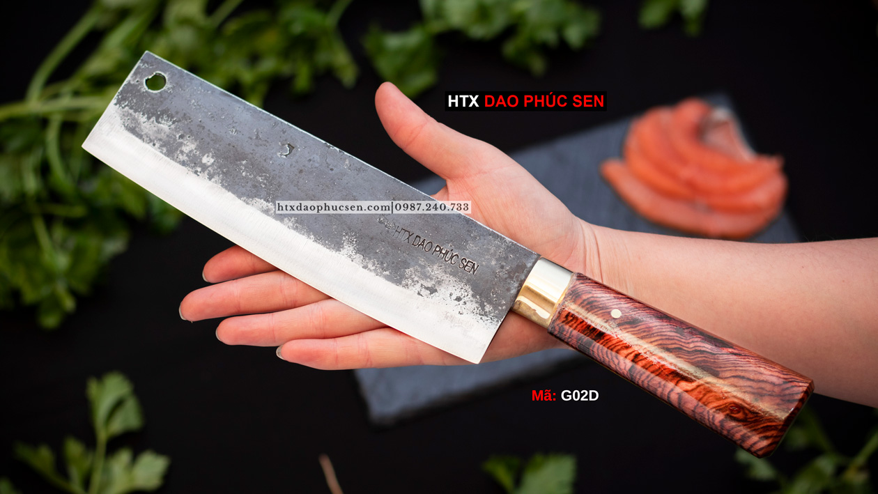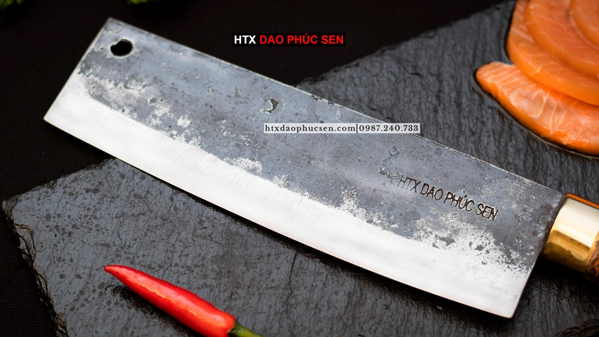 Dao thái 20 cán cẩm khâu đồng Lựa chọn nguyên liệu 100% là nhíp ô tô ( Liên xô, Ifa ) được các thợ rèn giỏi gia công tỉ mỉ từ lưỡi dao cho đến cán dao đảm bảo việc thái sắc - ngọt. Các sản phẩm của HTX Dao Phúc Sen thợ rèn đều sử dụng than củi khi nung thép cũng như tôi dao để đảm bảo lưỡi dao khi ra lò sắc bén và bền lâu. Lưỡi dao được rèn mỏng dần từ sống dao xuống lưỡi dao tạo độ sắc bén khi thái