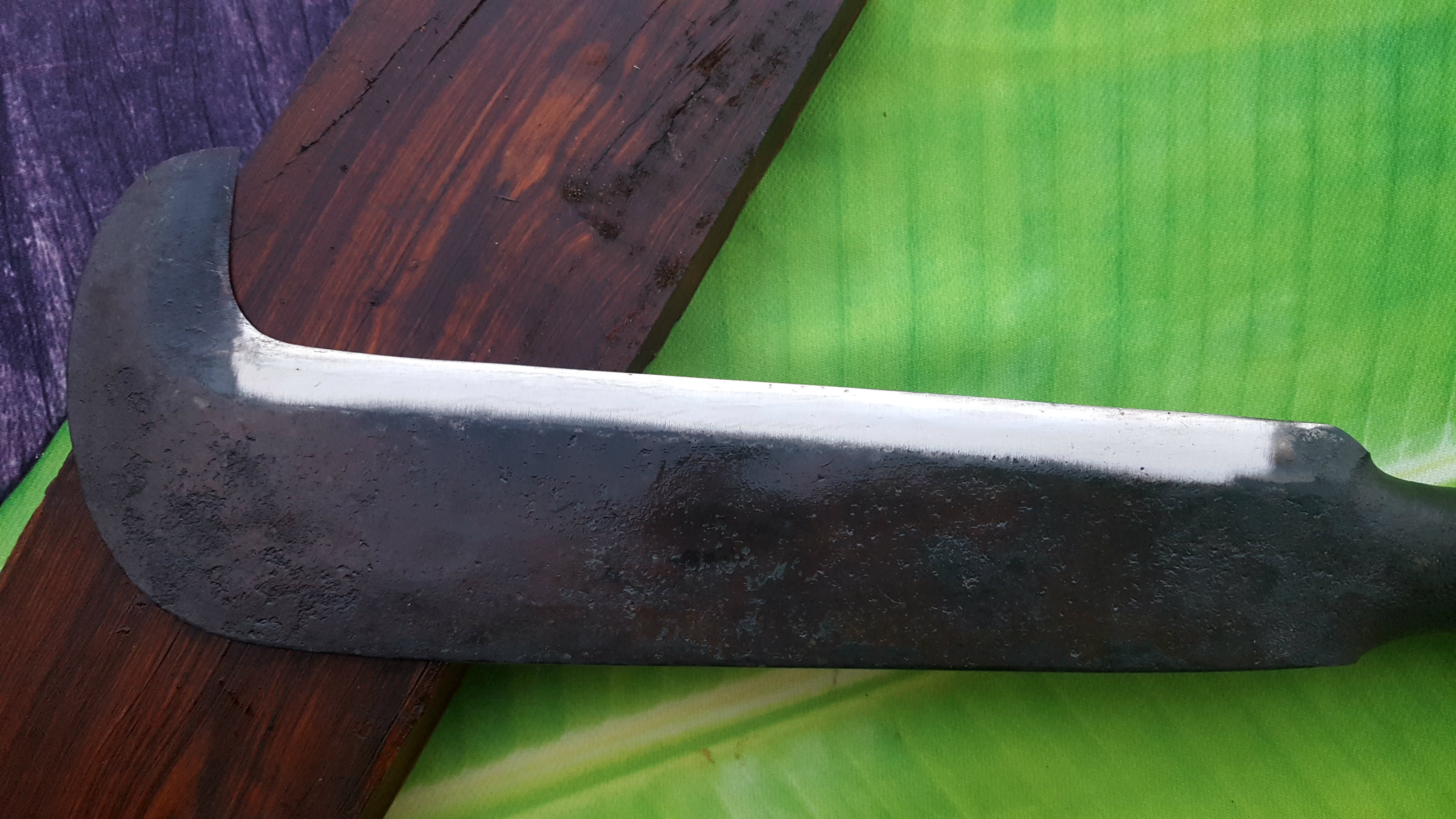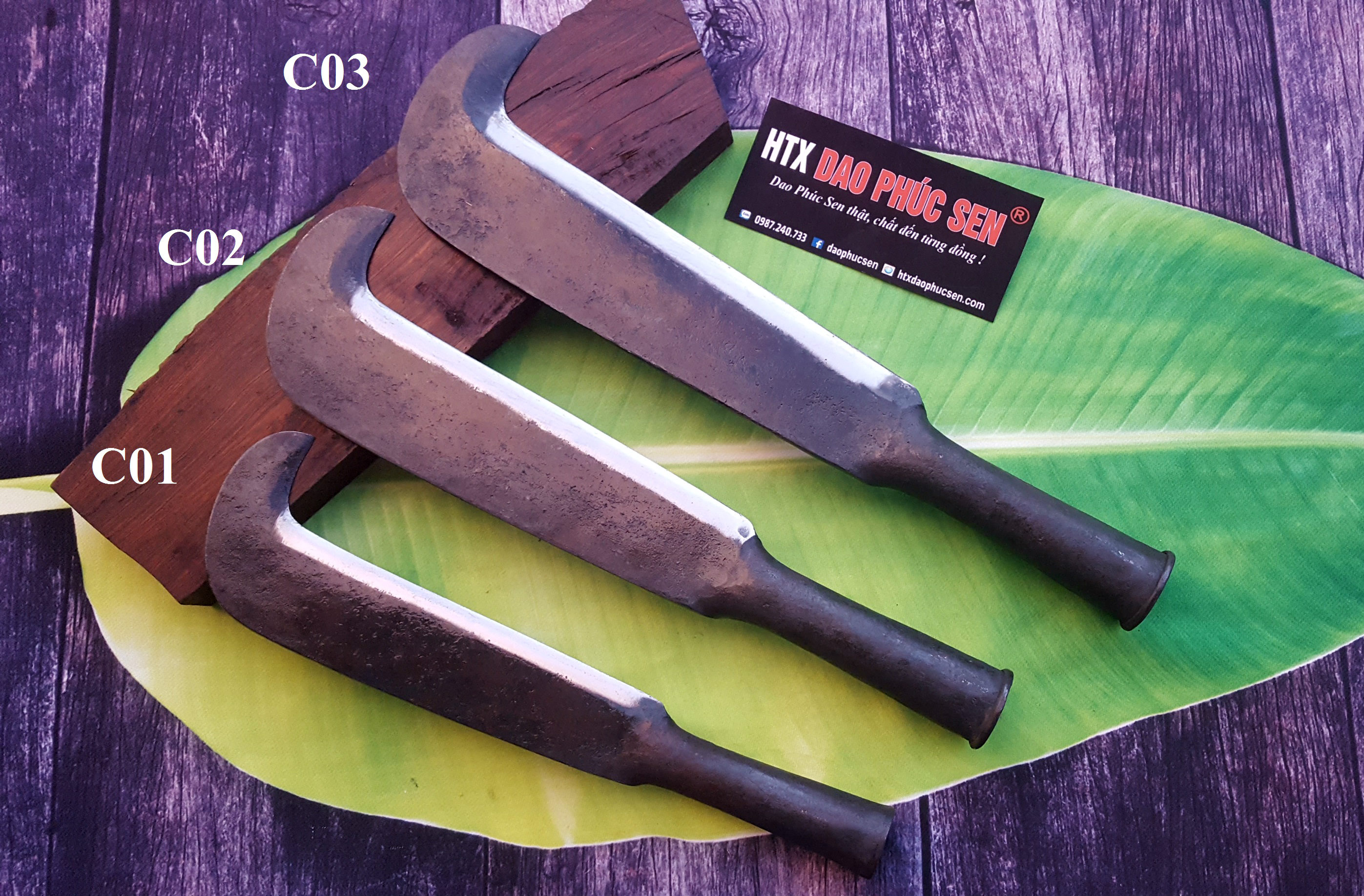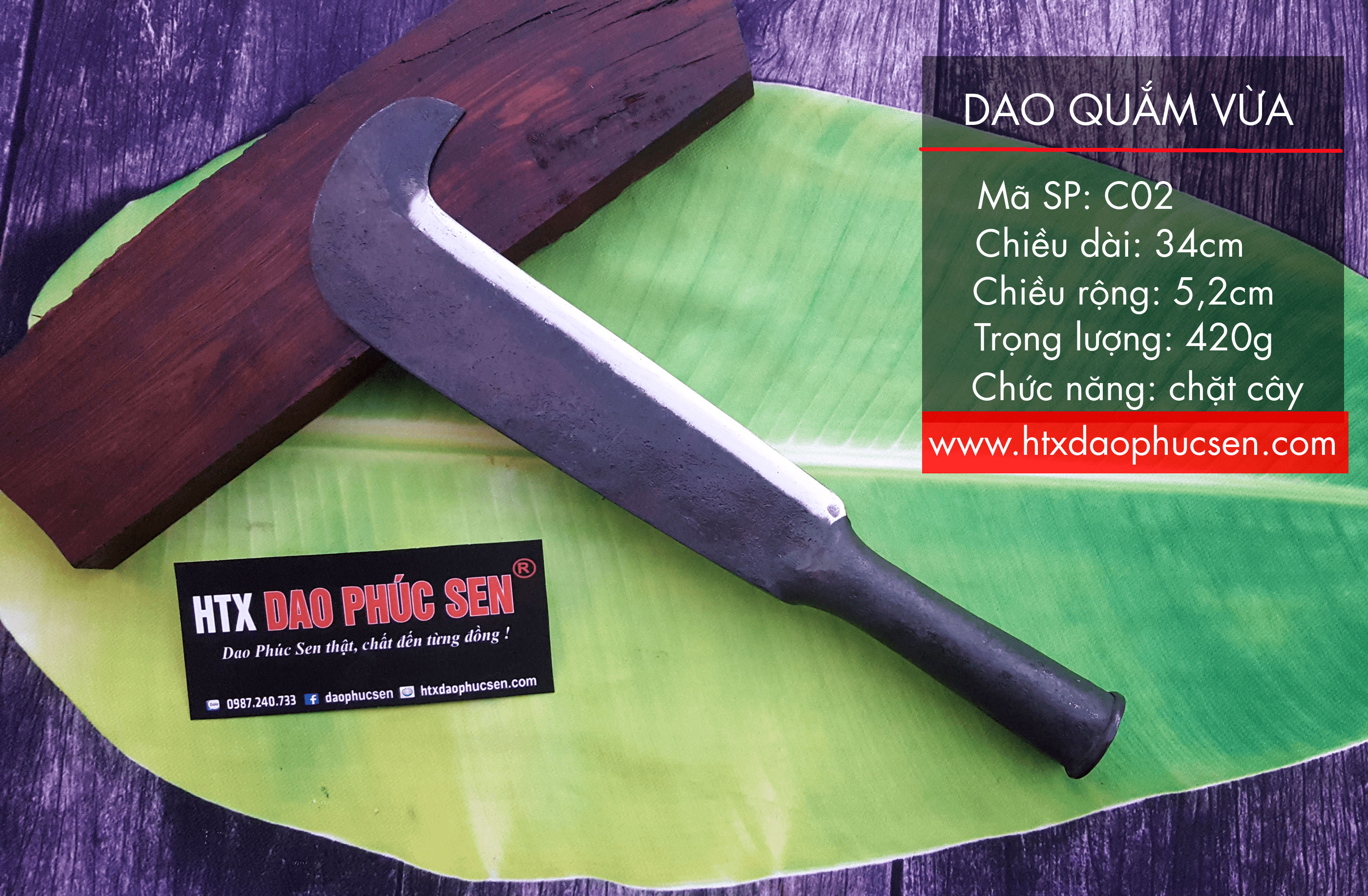 Dao Quắm là loại dao rèn mất nhiều thời gian nhất vì phải thêm công đoạn rèn cho mũi dao cong quặp xuống . Sống dao dầy 3ly đảm bảo việc chặt cây cối khá đầm tay