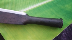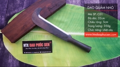Dao Quắm là loại dao rèn mất nhiều thời gian nhất vì phải thêm công đoạn rèn cho mũi dao cong quặp xuống . Sống dao dầy 3ly đảm bảo việc chặt cây cối khá đầm tay