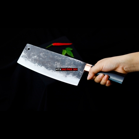 - Ngoài ra, phần cán Dao Phúc Sen được gia công và thiết kế hình trụ ô van dẹt, có phần đuôi cán lớn hơn phần đầu cán nên khi cầm nắm rất chắc chắn, vừa lòng bàn tay nên rất an toàn, đạt độ chính xác cao cho người dùng trong quá trình sử dụng. Phần cán còn được gia công thủ công tỉ mỉ từ các loại vật liệu quý hiếm và đắt tiền như: gỗ MUN ĐEN, khâu và chốt bằng vật liệu quý và độ thẩm mỹ cao cho sản phẩm khẳng định tay nghề, Uy tín, Thương hiệu HTX DAO PHÚC SEN.