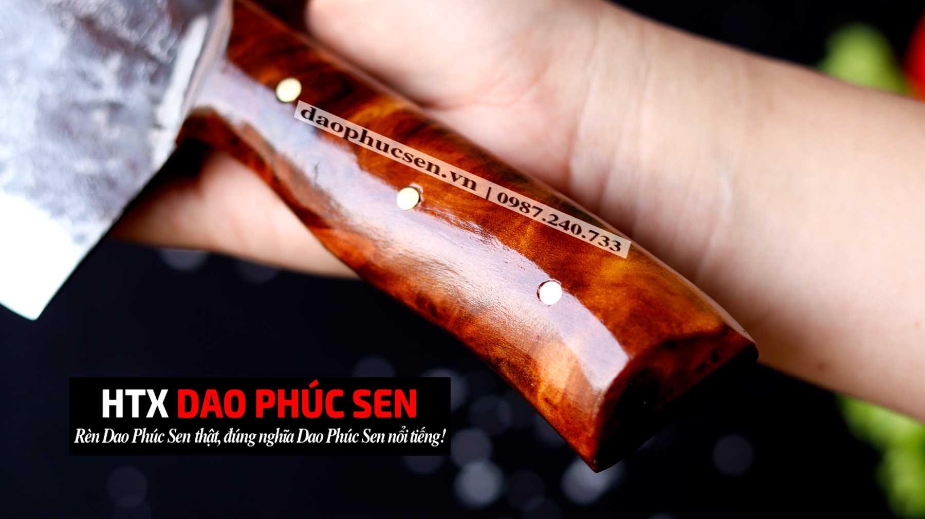 - Phần lưỡi dao được rèn từ thép nhíp oto nguyên khối đã qua kiểm định và lựa chọn kỹ càng nên đạt chất lượng rất tốt, đạt đến độ cứng mà không giòn, dẻo mà không mềm nên độ giữ sắc cửa lưỡi rất tốt nhưng đồng thời khi cần cũng rất dễ mài sắc lại như mới. phần lưỡi được tôi và được gia công bởi tay nghề của các thợ rèn giỏi của HTX DAO PHÚC SEN đã qua tuyển chọn nên nước tôi sáng bóng và cực kỳ sắc bén và đạt chất lượng tốt nhất. Từ việc lựa chọn chất liệu tốt, qua kiểm định chất lượng cộng với tay nghề của những người thợ giỏi đã có rất nhiều kinh nghiệm mà HTX DAO PHÚC SEN tuyển về, tất cả đã làm ra một con dao phúc sen chuẩn, đúng nghĩa dao phúc sen truyền thống vốn đã nổi tiếng.