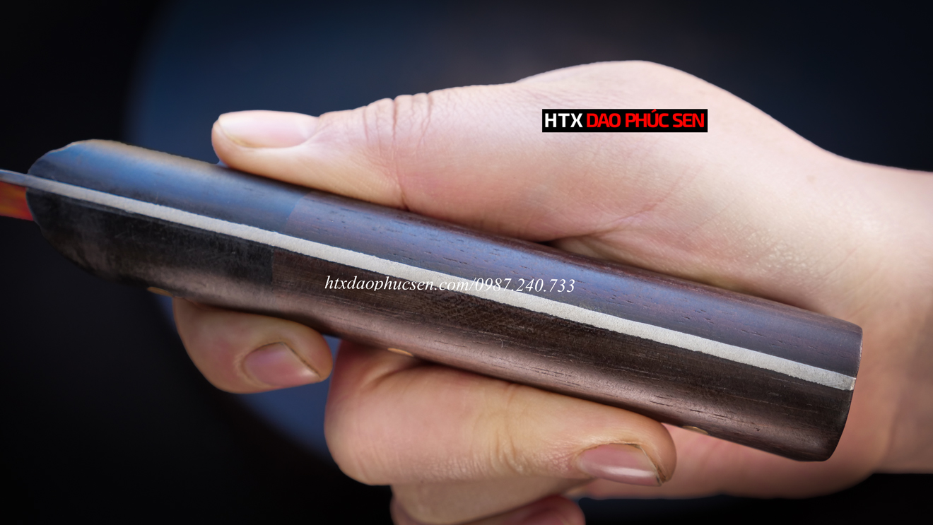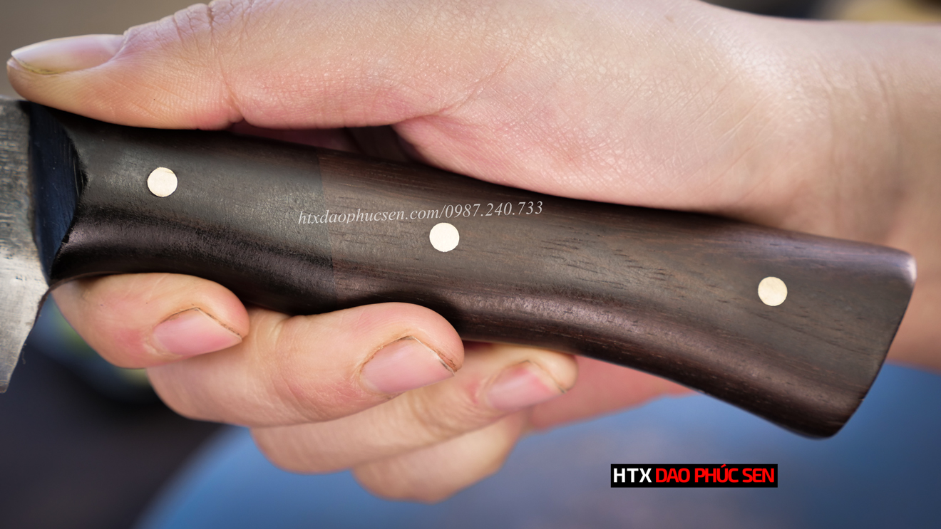 🔹 Cán dao – Cán ốp Gỗ tự nhiên + Chốt đồng thau cao cấp: