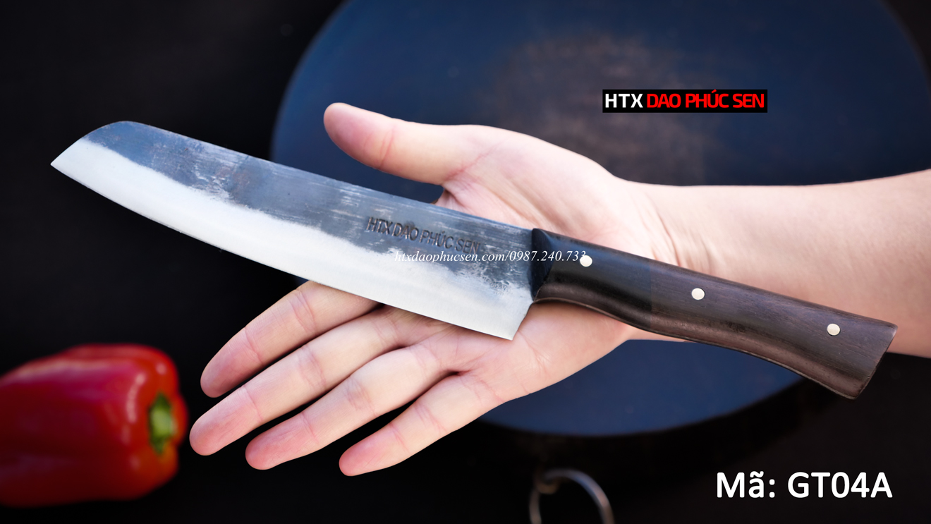 Dao thái kiểu GT04A là dòng sản phẩm dao rèn tay cao cấp thuộc thương hiệu DAO VIP – HTX DAO PHÚC SEN, nổi bật nhờ kiểu dáng gọn nhẹ, đường cắt mượt mà, rất phù hợp với các công việc thái thịt, rau củ trong căn bếp gia đình hoặc nhà hàng chuyên nghiệp.