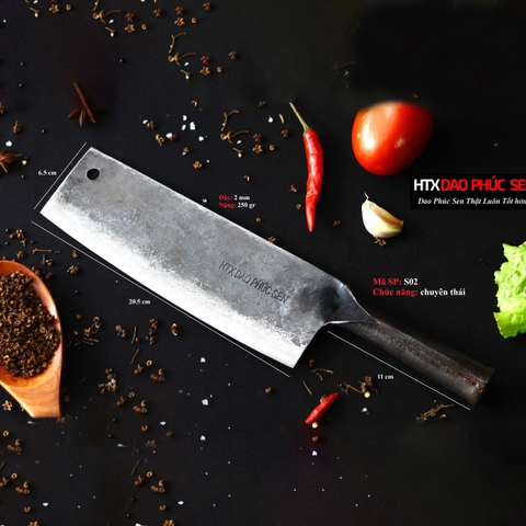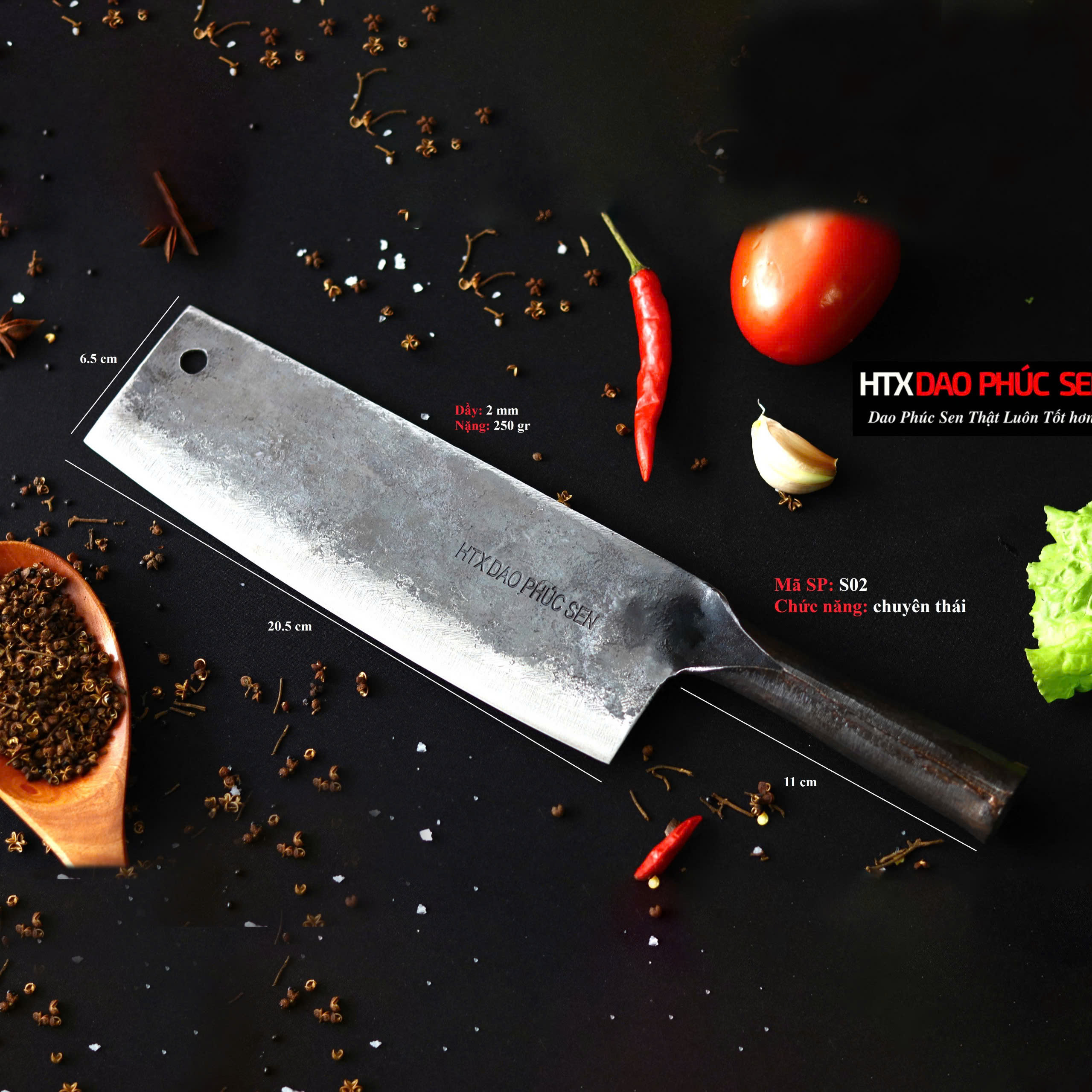Dao thái sắc bén - Cán sắt thép nhíp ô tô S02, dễ mài lại, HÀNG CHUẨN CỦA DAO VIP - HTX DAO PHÚC SEN